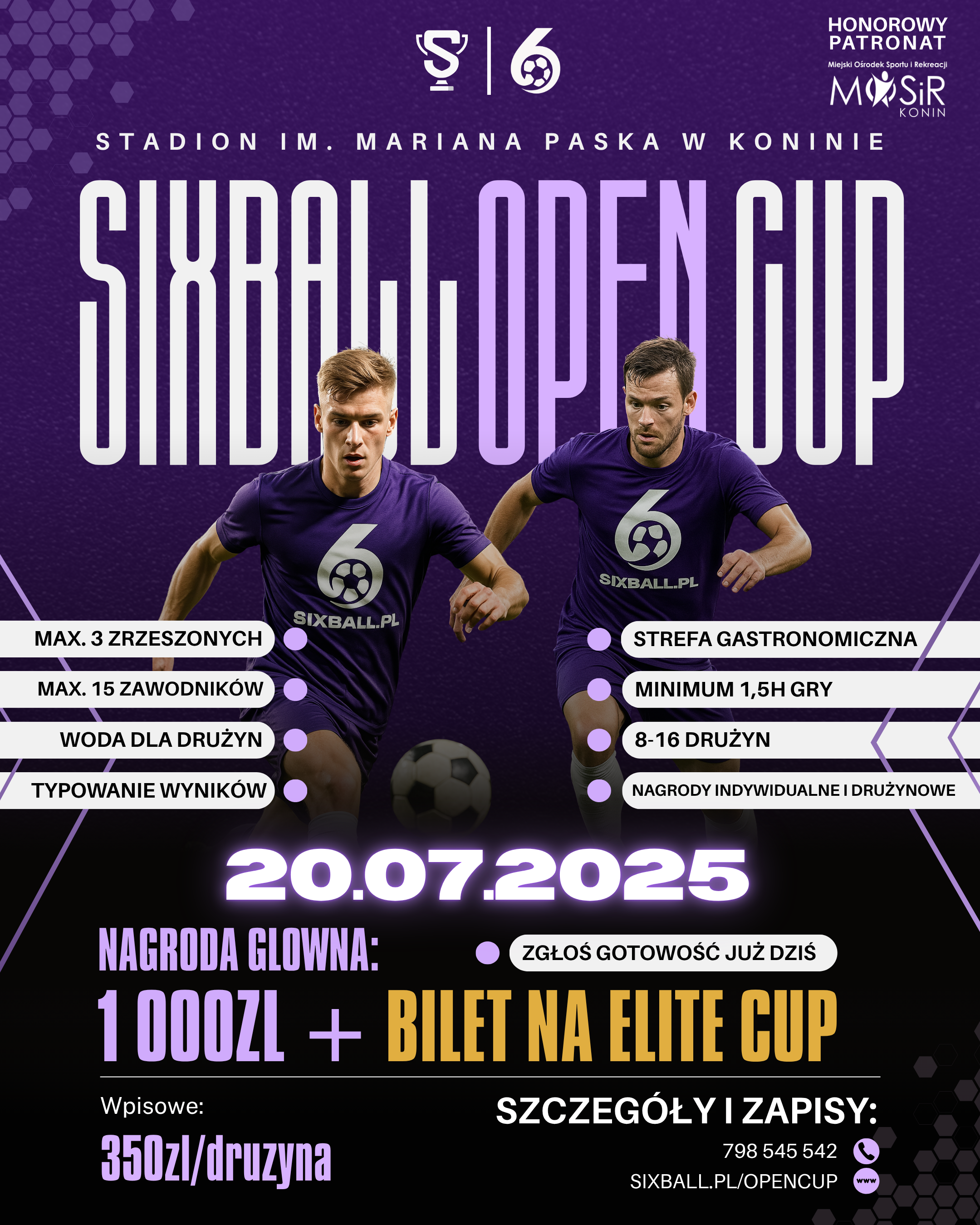 TURNIEJE OPEN CUP OPEN CUP II ELITE CUP WYBIERZ TURNIEJ I ZGŁOŚ SWOJĄ DRUŻYNĘ Wybierz turniej, do którego chcesz zgłosić swoją drużynę -- Wybierz -- U-19 CUP Open Cup Elite Cup Nazwa drużyny Imię i nazwisko kapitana Numer telefonu kapitana (9 cyfr) Adres e-mail kapitana Imię i nazwisko wicekapitana Numer telefonu wicekapitana (9 cyfr) Logo drużyny (opcjonalne, PNG/JPG)